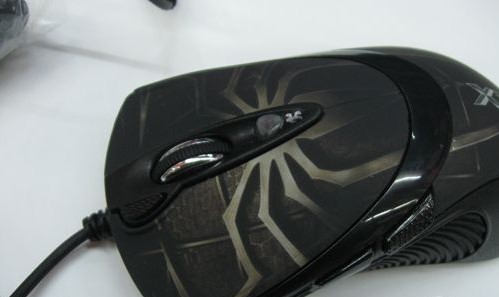 双飞燕 X7激光神定747除左右按键及滚轮外,还为我们提供了两个拇指快捷键、DPI切换键和“2X”双击键,其中除鼠标左键外所有的按键均可以通过驱动软件自定义,DPI切换键可实现免驱的6档切换,而且按键同时也是DPI指示灯,不同的颜色代表不同的DPI级别。
