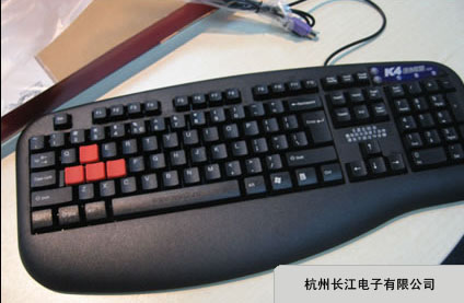 双飞燕K4-2005F火力王光电套装整体沿袭全黑外观设计,符耐脏的需求,而且也满足了某些游戏玩家对色彩的心理定位。键盘的外形上和G500,G600极为相似,只不过右上角的变向变速按键变成了音量调节键,同时该键盘不但具有五星级防水功能,而且还完美支持劲乐团游戏,使用七键模式时,游戏默认的七键同击不冲突,WASD四个游戏常用的按键采用软脚键帽设计,手感较佳,并且附有可更换的WASD黑色键帽(办公使用黑色比较舒适),采用的配重块设计使键盘更加稳固牢靠。